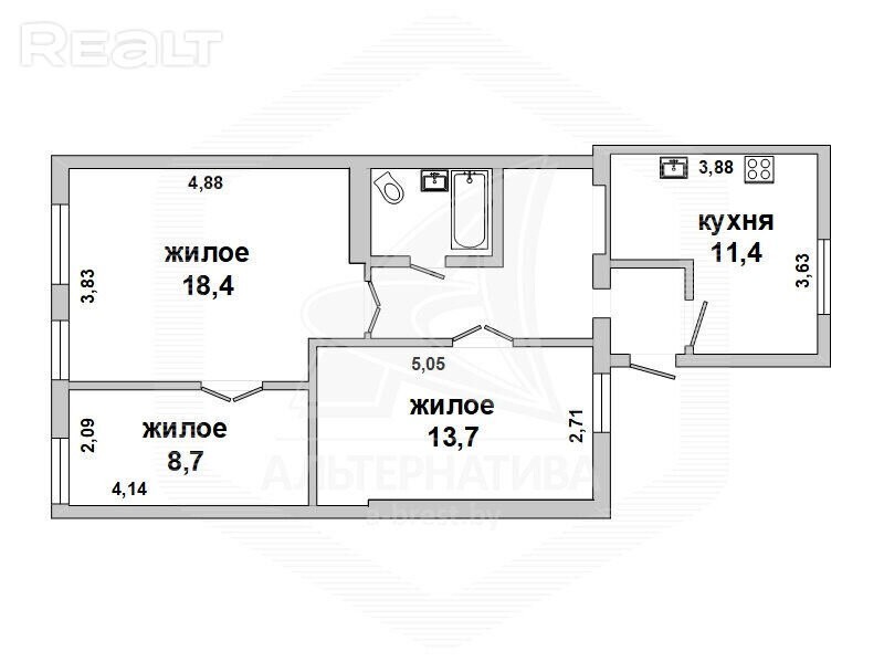 3-комнатная квартира для перевода в нежилой фонд в 901904