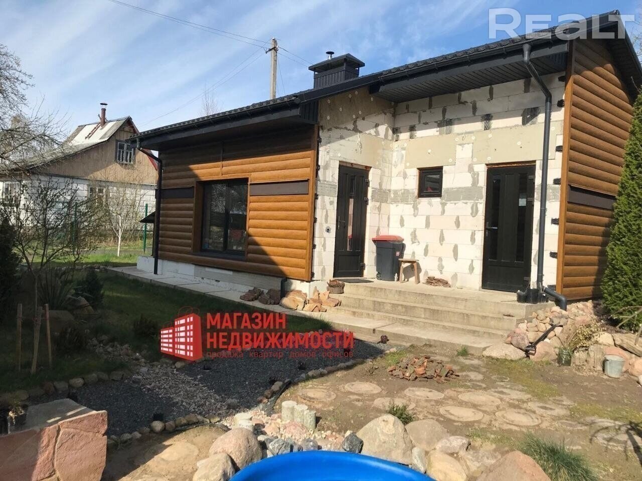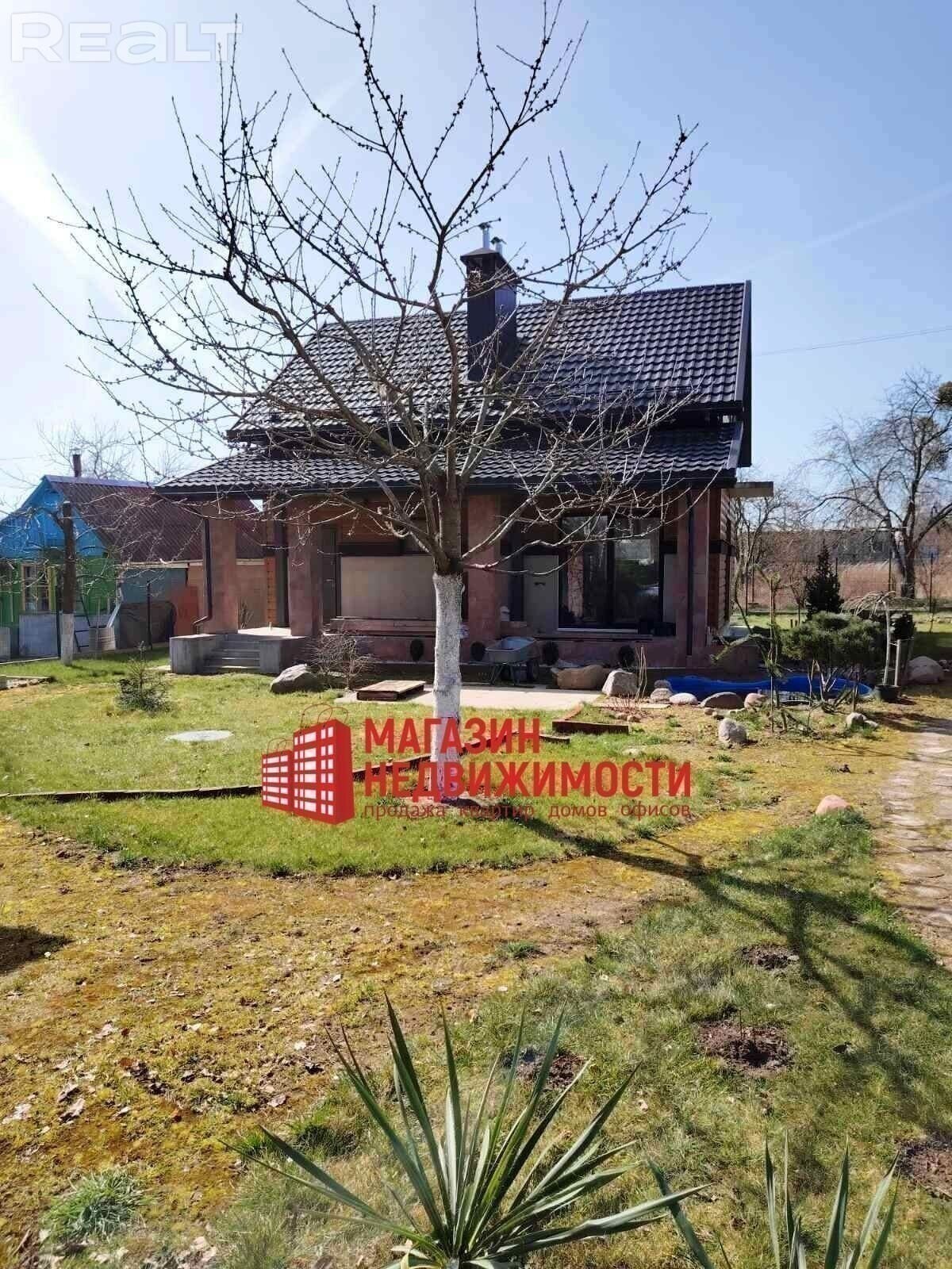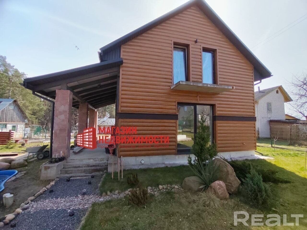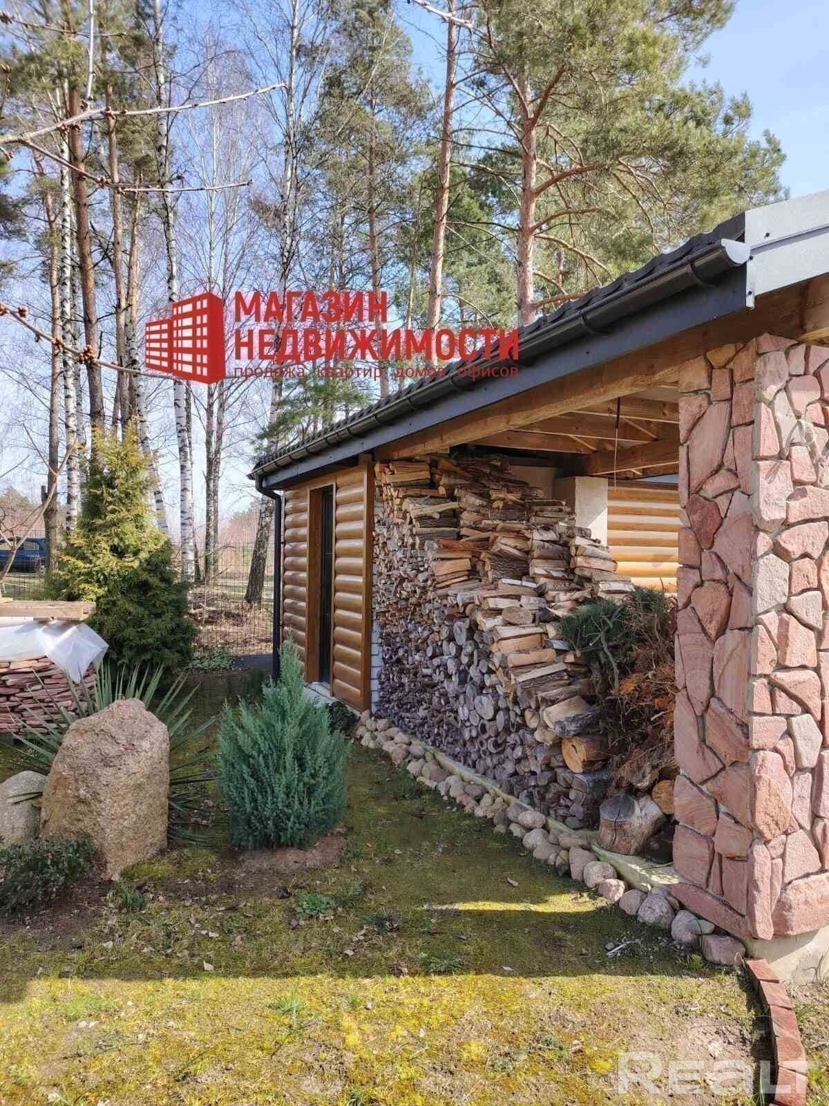 Современный надежный дом мансардного типа с террасой около леса. Дом без внутренней отделки. Теплые полы на 1 этаже, в бане и в душевой. Конвертеры под окнами. Отдельно стоящий гостевой домик с баней. Скважина, 2 септика, свет.