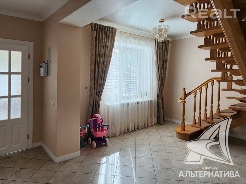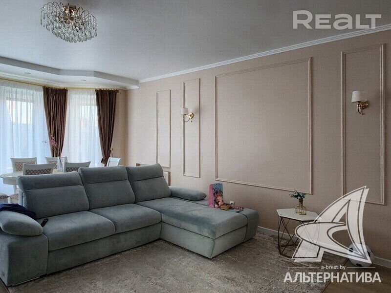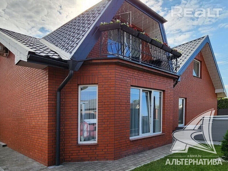 Жилой дом в г. Бресте. 1 этаж, мансарда. Общ. СНБ - 224,6 кв. м, общ. - 223,4 кв. м, жил. - 116,6 кв. м, кух. - 15,6 кв. м. 5 комнат, высота потолка - 2,80 м. Стены: материал - шлакобетонный блок; отделка фасада - керамический кирпич (глиняный). Кровля: металлочерепица. Фундамент: ленточный монолитный; материал - бетон; подушка - бетонная. Коммуникации: отопление - газовый котел, газ - централизованный (в доме), водоснабжение - централизованный водопровод, электричество - централизованное, канализация - централизованная. Хоз. постройки: гараж, беседка-навес с зоной барбекю. Участок - 0,0588 га. Всегда возможен торг - звоните! Готовы помочь для покупки этого объекта, Здесь можно - сегодня более 3000