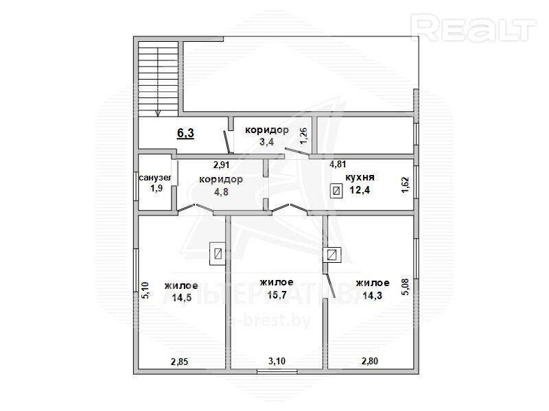 Квартира в блокированном жилом доме в г. Бресте. 1938 г. п. 2 этажа. Общ. СНБ - 73,3 кв. м, общ. - 67,0 кв. м, жил. - 44,5 кв. м, кух. - 12,4 кв. м. 3 комнаты, высота потолка - 2,5 м. Стены: материал - брус строительный; отделка фасада - доска обрезная. Кровля: шифер. Фундамент: ленточный сборный; материал - кирпич; подушка - песчно-гравийная. Коммуникации: отопление - газовый котел, газ - централизованный, водоснабжение - централизованное, электричество - централизованное, канализация - централизованная. Хоз. постройки: хозблок. Участок - 0, 0417 га (8/20 долей). Всегда возможен торг - звоните! Готовы помочь для покупки этого объекта, Здесь можно - сегодня более 3000