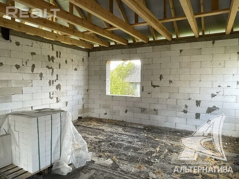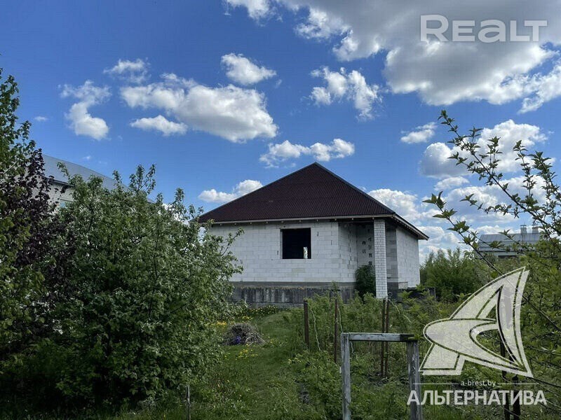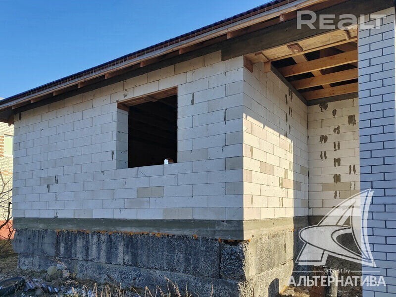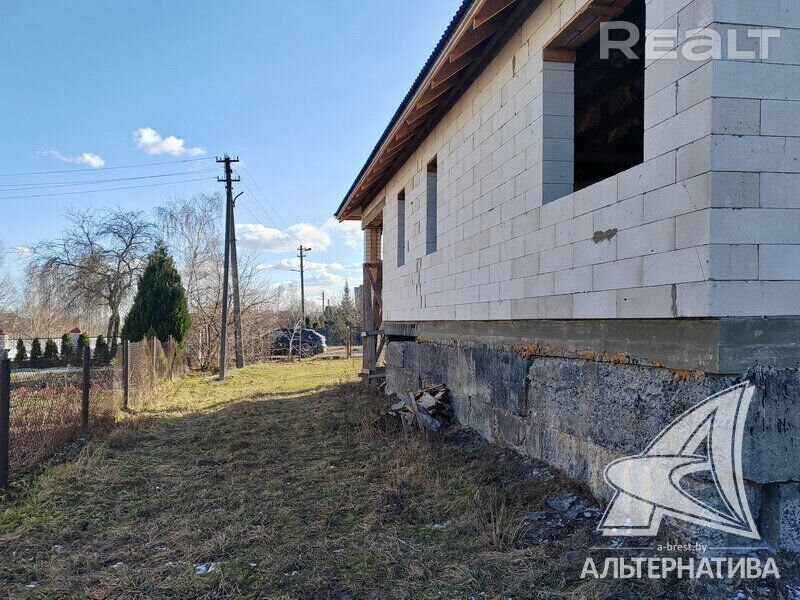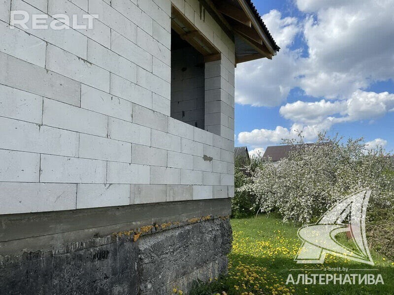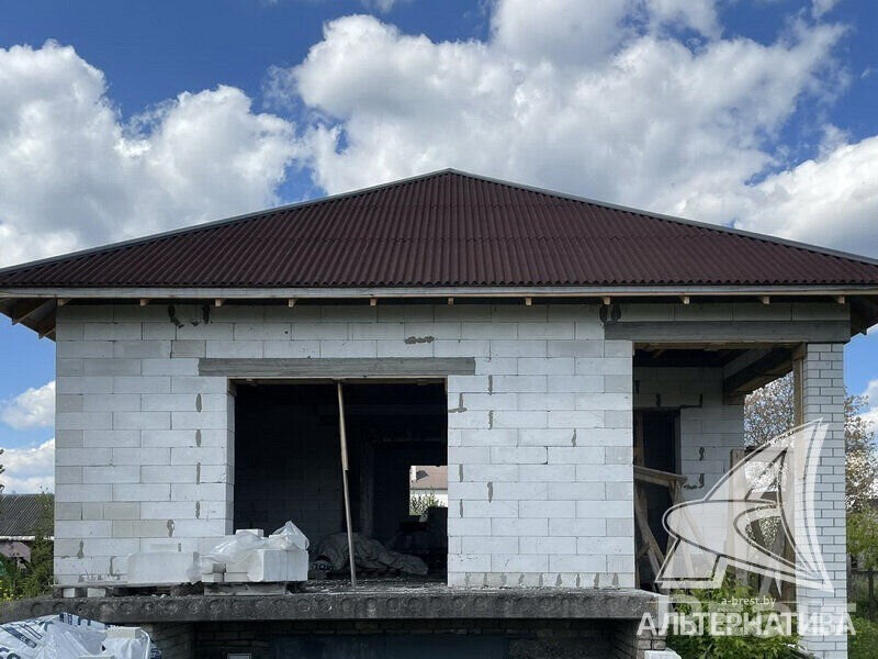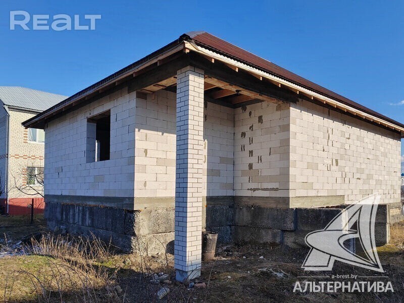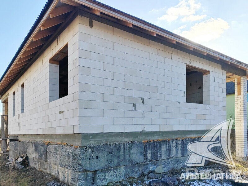 Коробка жилого дома в г. Бресте. 2023 г. п. 1 этаж. Общ. СНБ - 98,0 кв. м, жил. - 54,15 кв. м, кух. - 16,64 кв. м. 2 комнаты, высота потолка - 3,38 м. Стены: материал - газосиликатный блок. Кровля: еврошивер (ондулин). Фундамент: ленточный монолитный; материал - бетон; подушка - бетонная. Коммуникации: газ - централизованный (пл улице, взносы не оплачены), водоснабжение - централизованный водопровод, электричество - централизованное (на участке), канализация - автономная. Участок - 0,1199 га. Всегда возможен торг - звоните! Готовы помочь для покупки этого объекта, Здесь можно - сегодня более 3000
