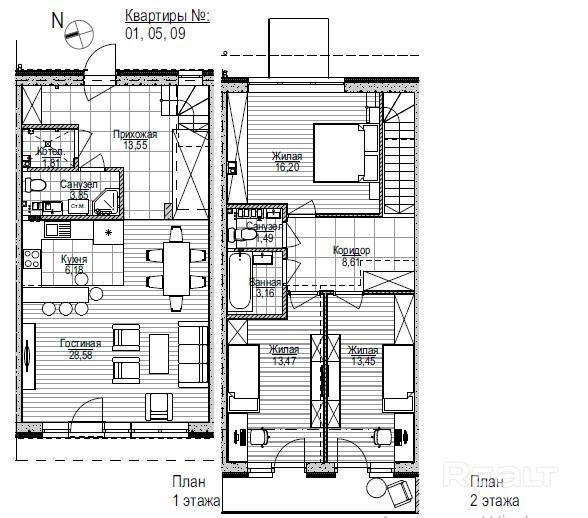 2-уровневая квартира в современном жилом комплексе
