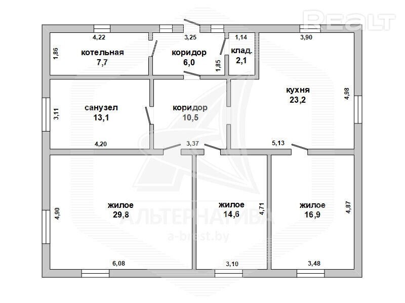Жилой дом в Брестском р-не. 1991 г. п. 1 этаж. Общ. СНБ - 123,9 кв. м, общ. - 123,9 кв. м, жил. - 61,3 кв. м, кух. - 23,2 кв. м. 3 комнаты, высота потолка - 2,65 м. Стены: материал - газосиликатный блок; отделка фасада - силикатный кирпич. Кровля: шифер. Фундамент: ленточный монолитный; материал - бетон. Коммуникации: отопление - газовый котел, газ - централизованный (в доме), водоснабжение - скважина и гидрофор, электричество - централизованное, канализация - автономная. Хоз. постройки: 2 сарая. Участок - 0,2500 га. Всегда возможен торг - звоните! Готовы помочь для покупки этого объекта, Здесь можно - сегодня более 3000