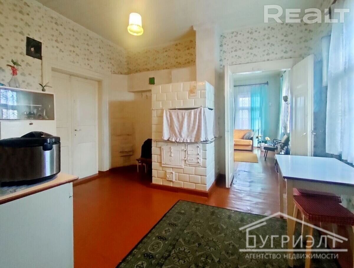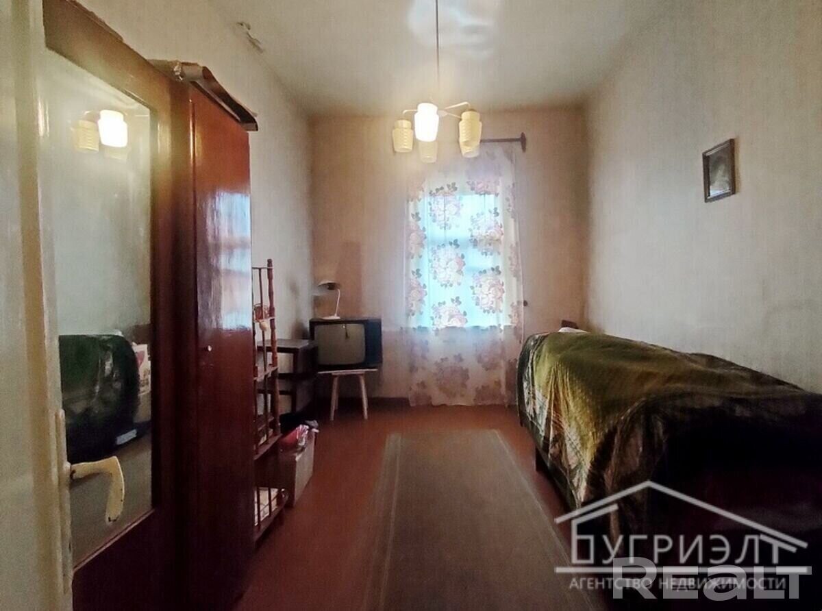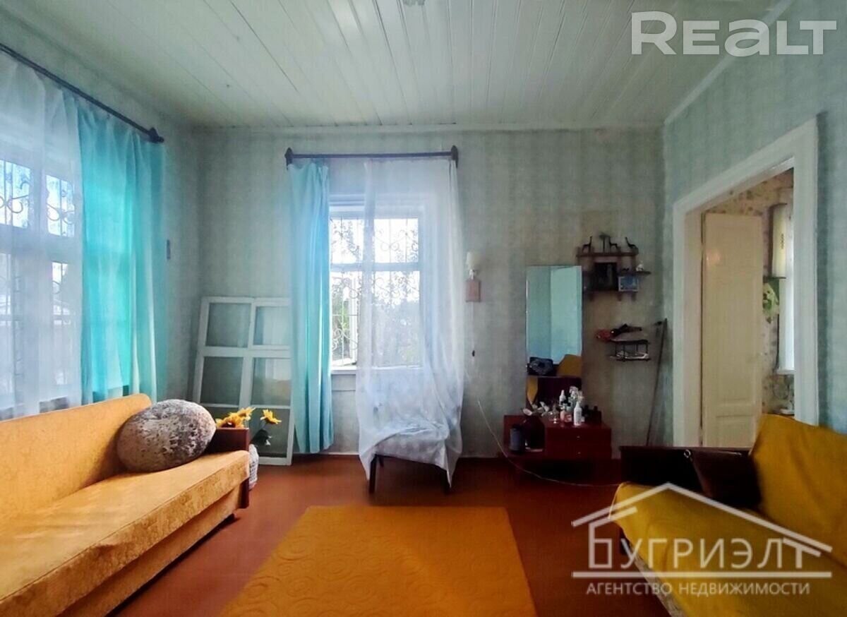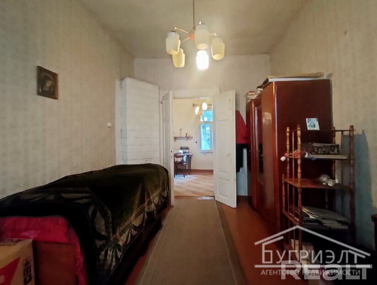 № 530135 Часть дома (выделенная квартира) в одноэтажном жилом доме с тремя комнатами в городе Пинске, микрорайон Северный, ул. Топольная. Год постройки дома 1917. Общая площадь дома - 69,2 м2, жилая площадь - 40 м2. Стены - брус, кровля - листы асбестоцемент, окна с деревянными рамами. Аккуратное жилое состояние: на полу лежит доска, потолок - подшит сайдингом, на стенах обои, межкомнатные двери - деревянные. Коммуникации: электричество, отопление - печь (газ по улице), водоснабжение - водопровод (в квартире), канализация центральная по улице. Дополнительно имеется: кирпичный надворный погреб, один дощатый и один пеноблочный сараи, дощатая уборная. Участок площадью 6,5 соток вытянутой формы с насаждениями из деревьев и кустарников. Огороженная территория. Подъезд - грунтовая дорога, до асфальта 20 метров. Рядом с домом расположены: магазин, аптека, остановка общественного транспорта. Лот № 530135. Договор № 135/5 от 26.10.2023, ООО Бугриэлт, УНП *********, лицензия № *********т 05.02.2013 на право осуществления деятельности по оказанию юридических услуг (риэлтерские услуги).