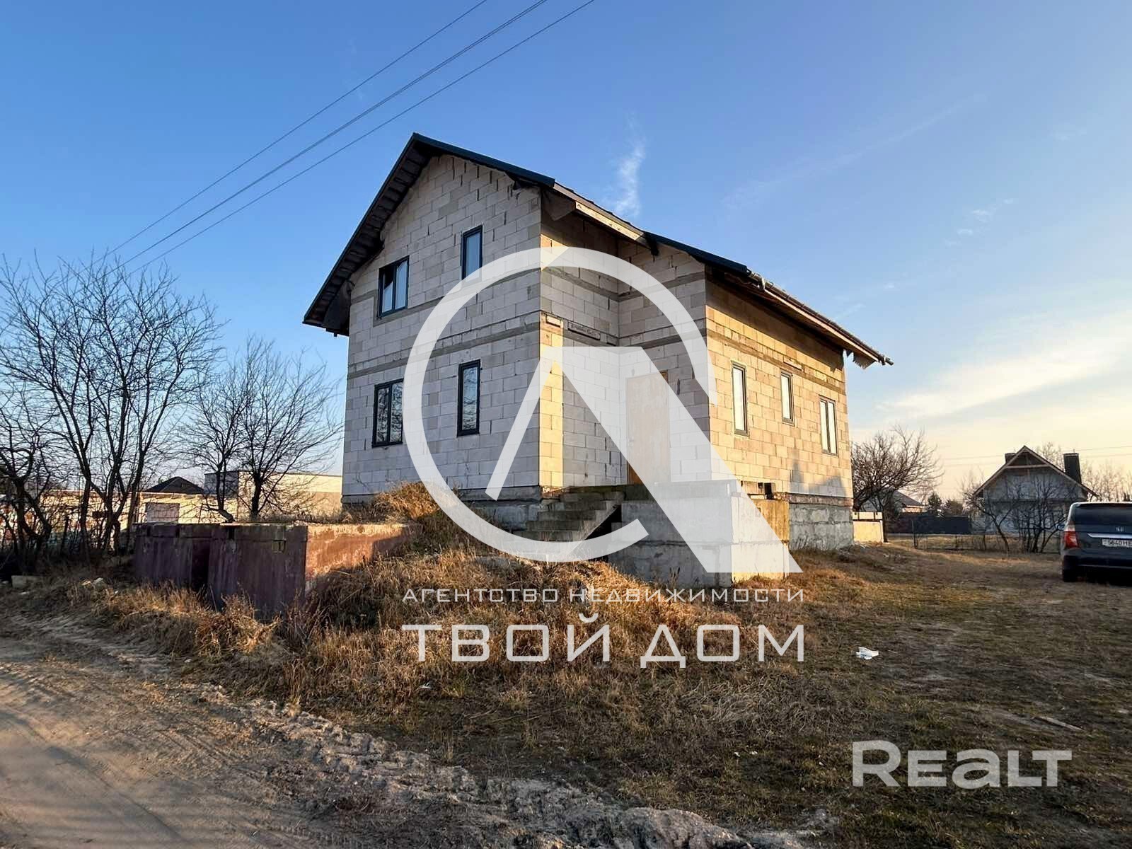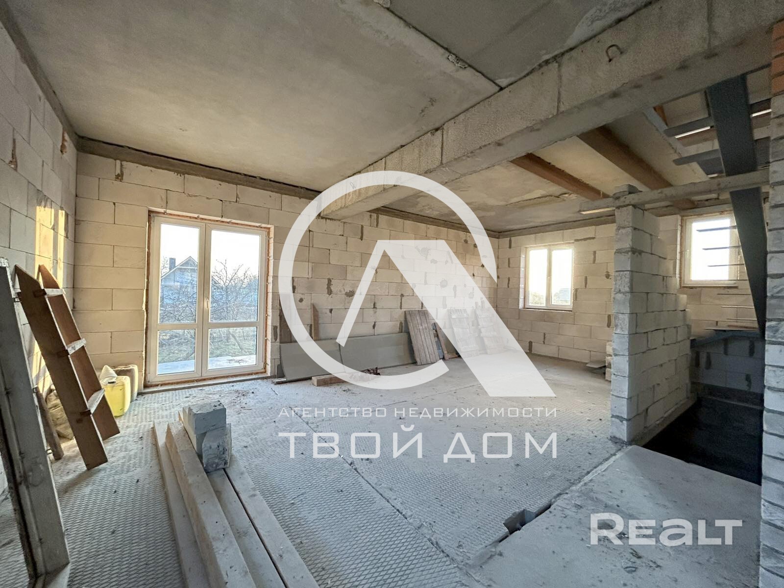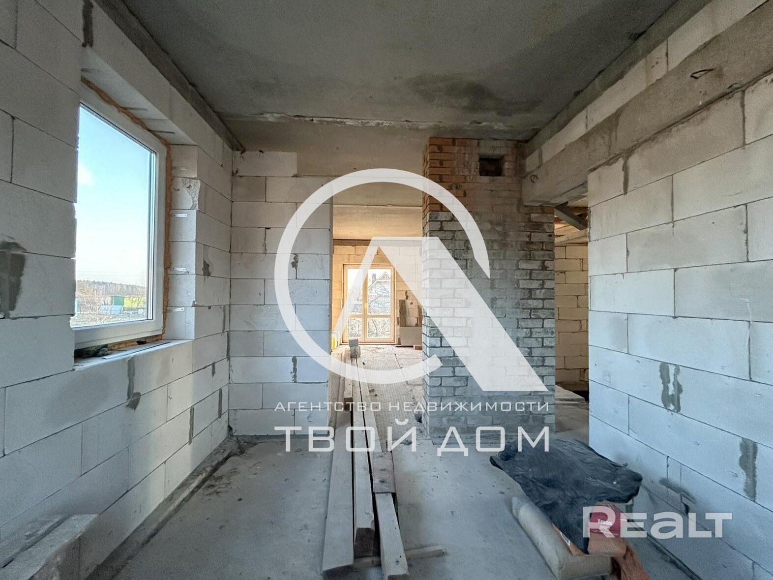 Согласно планировке, на первом этаже в доме: кухня-гостиная, изолированная комната, раздельный санузел, тамбур, котельная, из кухни- гостиной предусмотрена просторная терраса с видом на закаты. На втором этаже запланировано три изолированные спальни, санузел, гардеробная комната. Из дома есть выход в подвал (во весь рост и по площади практически на весь дом).