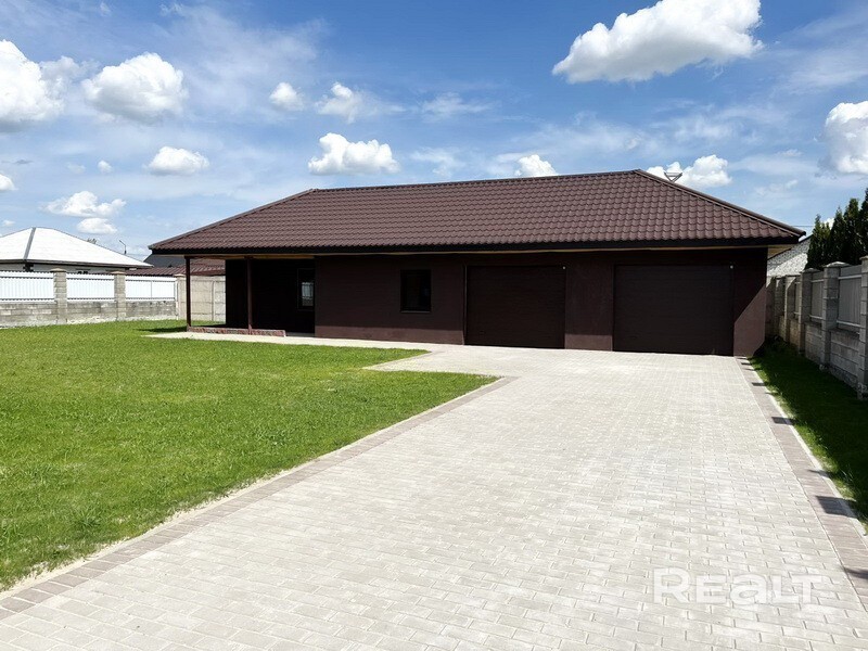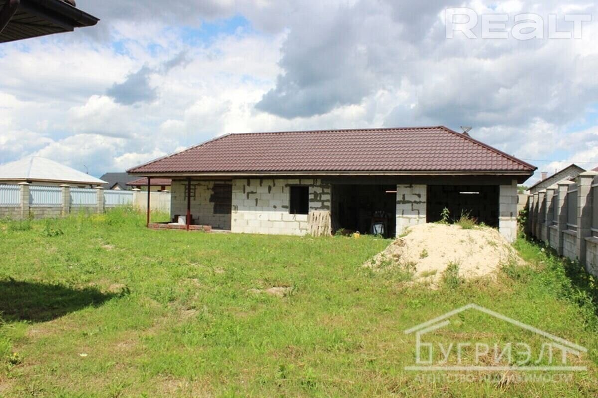 Одноэтажный дом под чистовую отделку с четырьмя комнатами в городе Пинске, микрорайон Верасы (возможно переоборудовать на два входа). Год постройки дома 2022. Общая площадь дома - 150 м2, стены - газосиликатный блок, обложен кирпичом, кровля - металлочерепица, окна - пластиковые стеклопакеты. В доме все коммуникации: электричество, отопление - газовое, водоснабжение - водопровод, канализация - местная. Дополнительно имеется: гараж, сарай. Участок площадью 10 соток правильной прямоугольной формы. Подъезд - асфальт. Лот 580210 Договор № 210/5 от 26.10.2018, ООО Бугриэлт, УНП *********, лицензия № *********т 05.02.2013 на право осуществления деятельности по оказанию юридических услуг (риэлтерские услуги)