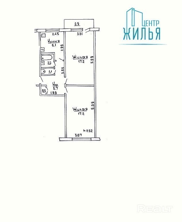 В продаже хорошая 2комнатная квартира с ремонтом на БЛК. Площадь - 51,3/34,4/6,1 м2.