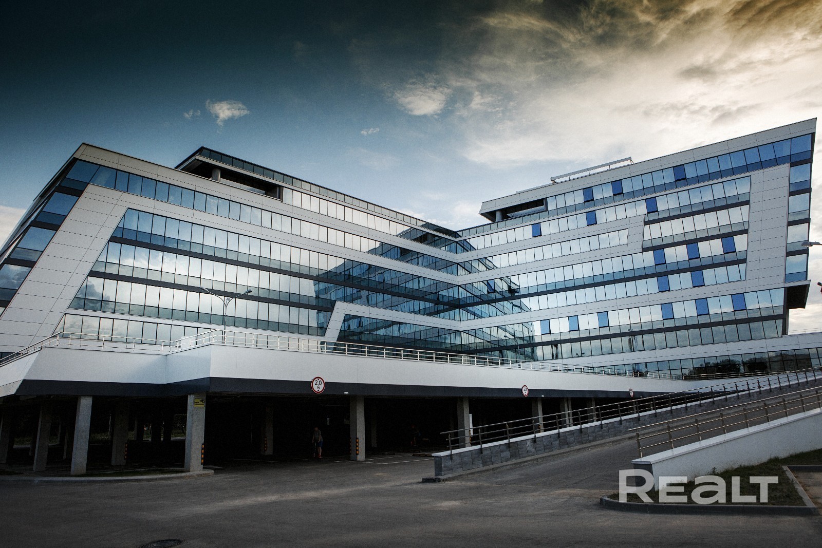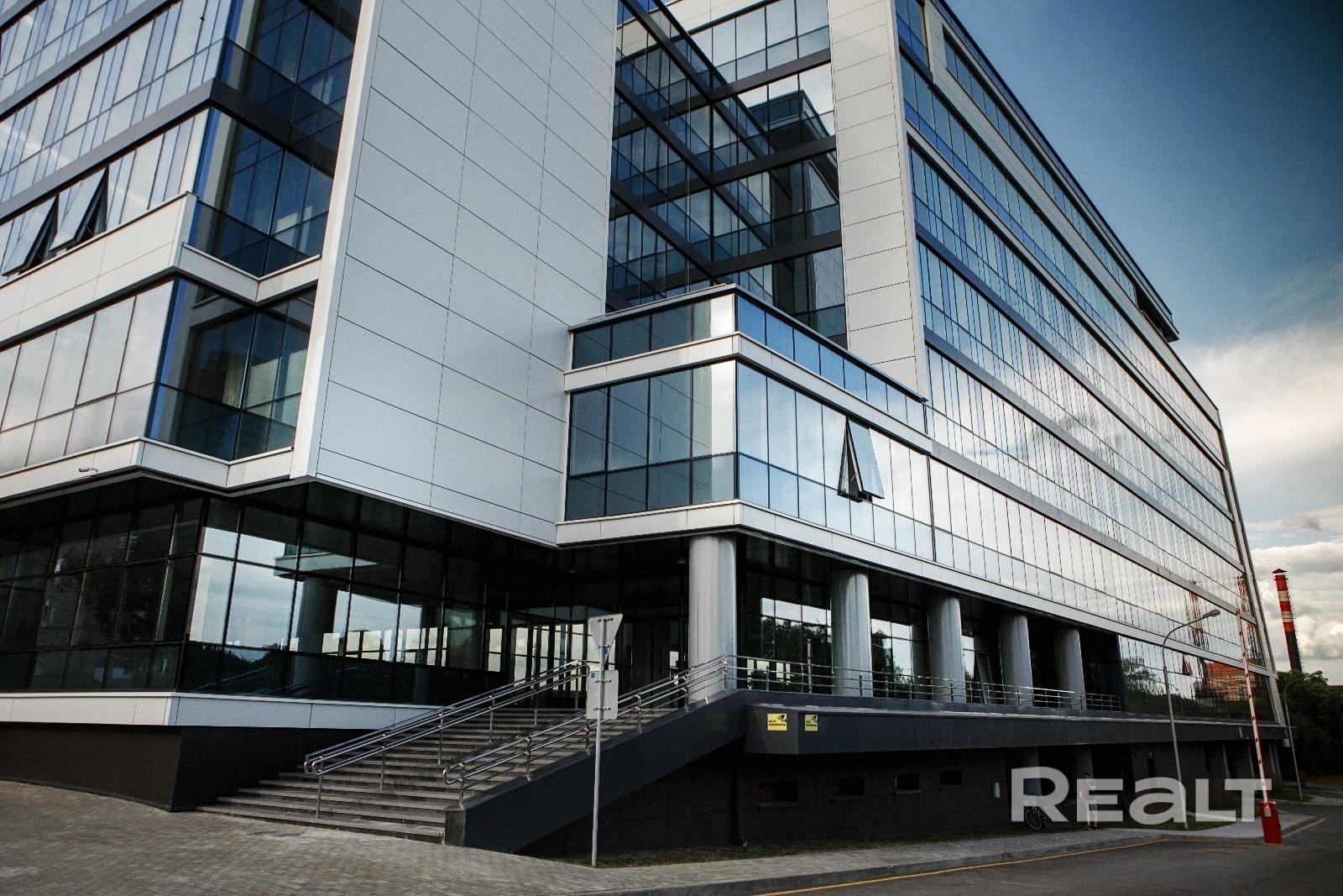 Здание расположено в центре города с прекрасным транспортным сообщением: простой выезд на МКАД по ул. Маяковского, Партизанскому проспекту, удобный выезд на проспект Дзержинского, рядом Центральный автовокзал, ТРЦ "Червенский". Восьмиэтажное здание, состоит из двух блоков, расположено в непосредственной близости к парково-рекреационной зоне, рядом река. Имеется собственный паркинг разделенный на 2 уровня. Доступ на территорию крытого паркинга осуществляется через шлагбаумы. Есть гостевой паркинг со свободным доступом посетителям.