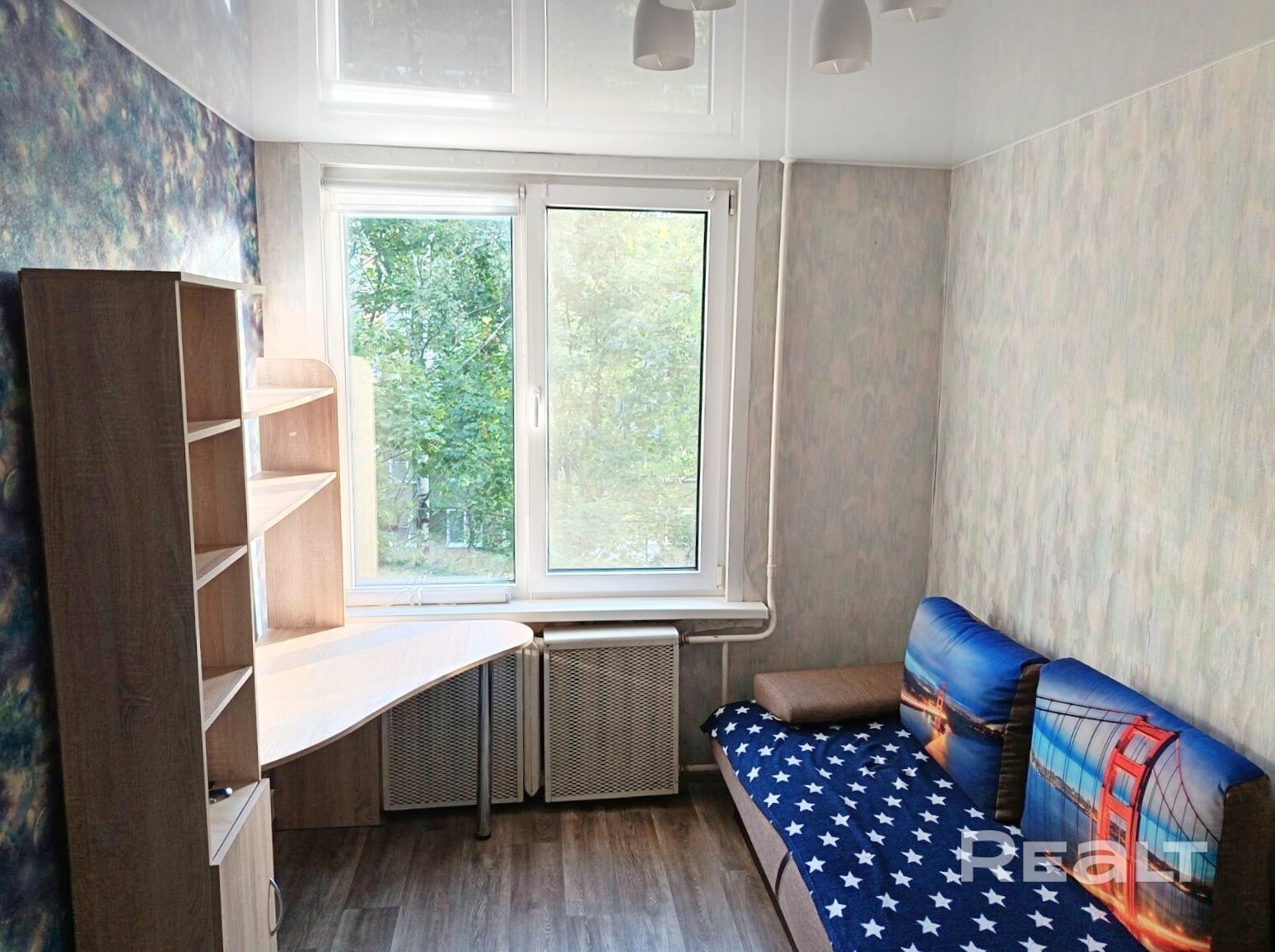 Возможен обмен квартиры на 3х комнатную квартиру в г. Заславль или 2,3х комнатную во Фрунзенском районе Минска с доплатой. Светлая уютная квартира расположена на 4 этаже 5-ти этажного дома. Удобная планировка - комнаты квартиры раздельные, выходят на разные стороны, в тихий зеленый двор. Квартира не угловая, теплая, сухая. Батареи в квартире чугунные.
