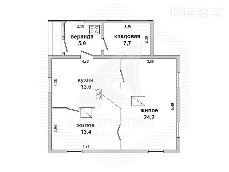 Жилой дом в Кобринском р-не. 1969 г. п. 1 этаж. Общ. СНБ - 64,8 кв. м, общ. - 51,2 кв. м, жил. - 37,6 кв. м, кух. - 13,6 кв. м. 2 комнаты, высота потолка - 2, 55 м. Стены: материал - строительный брус; отделка фасада - обрезная доска. Кровля: шифер. Фундамент: ленточный монолитный; материал - бетон. Коммуникации: отопление - печь, газ - привозной газовый баллон, водоснабжение - колодец, электричество - централизованное, канализация -. автономная Хоз. постройки: гараж, летняя кухня, два сарая. Участок - 0,2500 га. Всегда возможен торг - звоните! Готовы помочь для покупки этого объекта, Здесь можно - сегодня более 3000