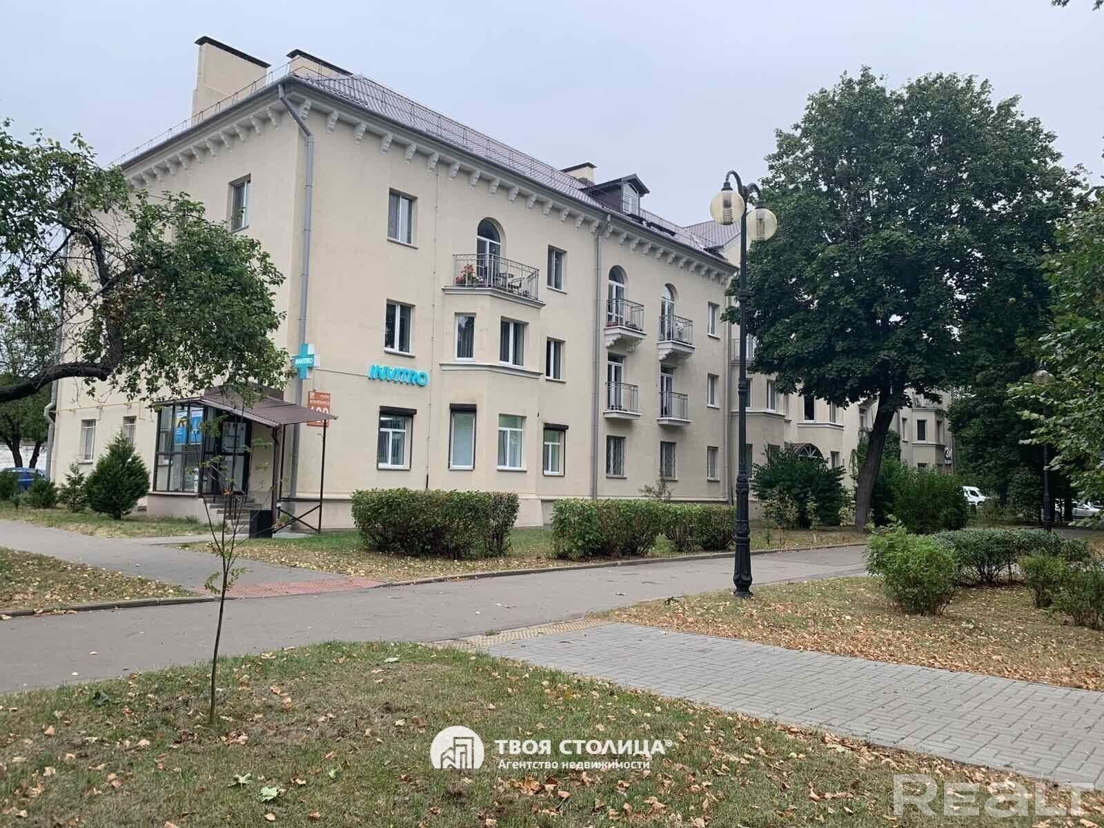 Трёхкомнатная просторная квартира на проспекте Независимости, 109, рядом со станцией метро Московская. Квартира находится на первом этаже трёхэтажного жилого дома. Классическая сталинка с просторными комнатами 20.35 кв м, 18,14 кв м, 13.87 кв м, большой кухней 9.43 кв м, раздельный санузлел. Высокие потолки 3,0 м., большие оконные проёмы и широкие подоконники делают квартиру визуально ещё больше и просторнее. Без балкона.