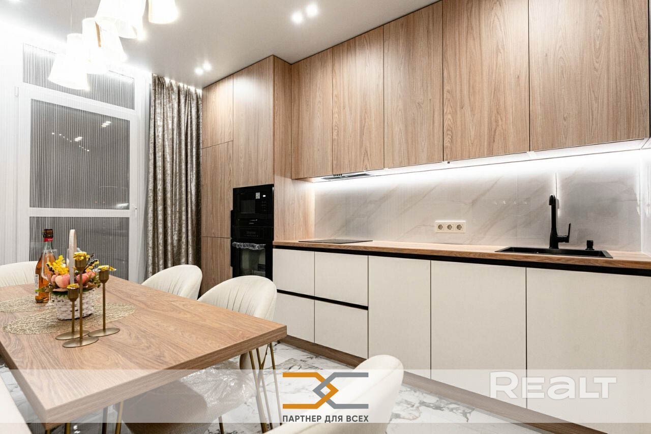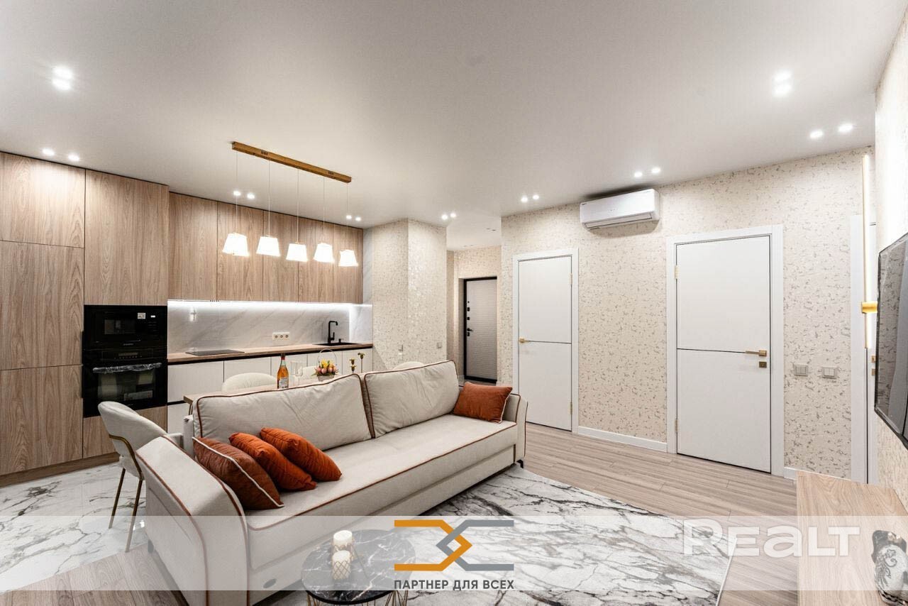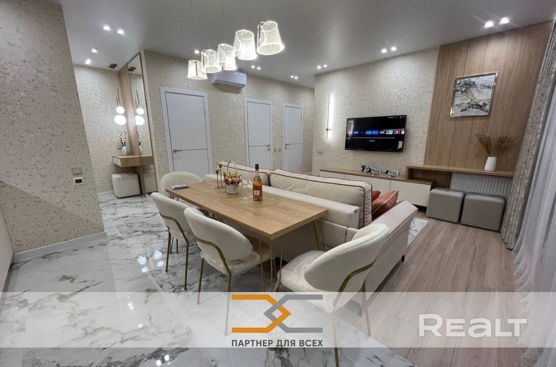 Продается новая 3-комнатная квартира с дизайнерским ремонтом, в основе которого комбинация из натуральных материалов и белого цвета. Общая площадь квартиры 73.4 м. кв. включает в себя 2 спальни, кухню-гостиную, 2 лоджии, прихожую, санузел и ванную комнату с душевой.