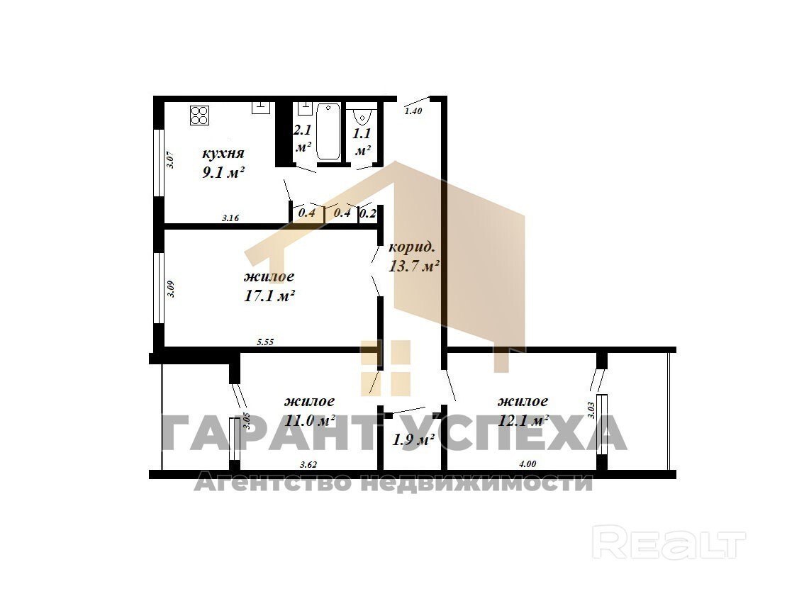 Лот 8997. Звоните для более подробной информации Продаётся трёхкомнатная квартира в районе Вулька города Бреста по ул. Сябровская на 9 этаже 10-этажного панельного дома 1993 года постройки. Площадь - 69,1 м (по СНБ 73,7 м), кухня - 9,1 м. Удобная планировка: три жилые комнаты (40,6 м), просторная кухня, раздельный санузел, две застекленные лоджии. Окна ПВХ. Входная дверь - металлическая, межкомнатные - двери дерево. Полы - ламинат. Потолок - натяжной. Санузел облицован плиткой. При продаже остаётся кухонный гарнитур, встроенная мебель. Район с развитой инфраструктурой, в шаговой доступности магазины, торговый центр, школы, детские сады, аптеки, кафе. Хорошая транспортная развязка, рядом остановка общественного транспорта. Остались вопросы? или пишите, указав номер лота. Наш Инстаграм. Подпишись, чтобы быть в курсе срочных продаж. Для ценителей Телеграма у нас создан чат-бот Покупая недвижимость с нами, Вы будете уверены в безопасности и надежности сделки. ЧУП «Гарант успеха», УНП *********, лицензия № *********т 20.10.2006 г., договор на оказание риэлтерских услуг №465/1 от 19.08.2025 г.
