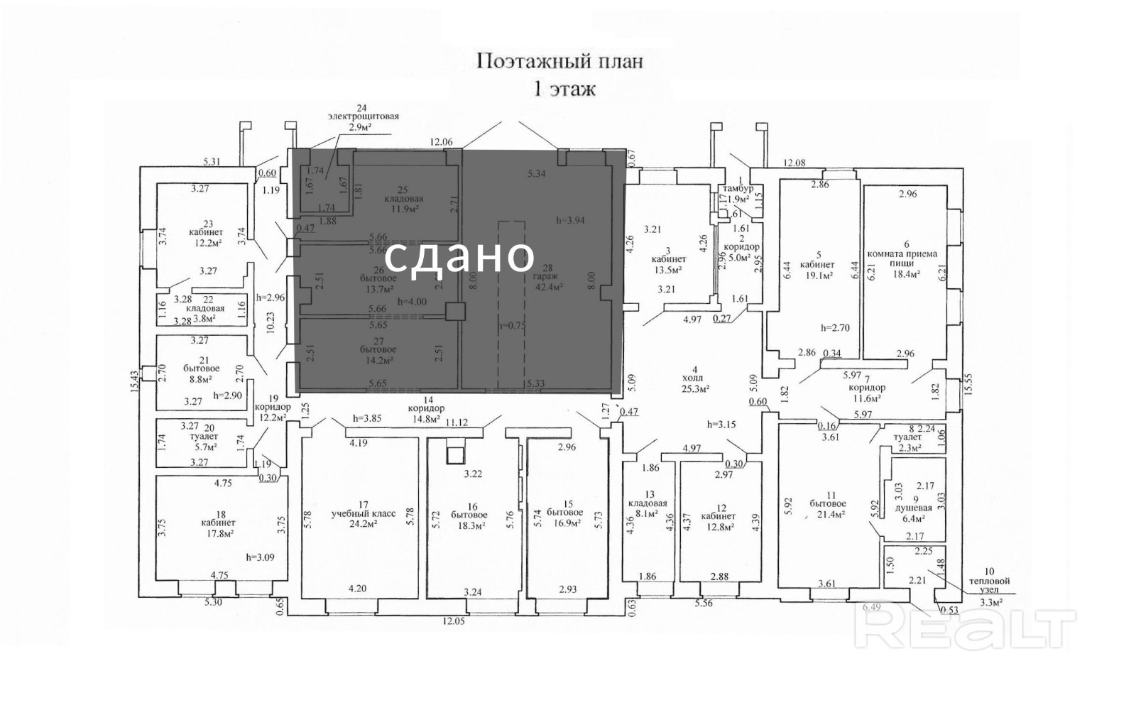 Аренда административно - хозяйственного здания (офисное) в г. Бресте по ул. Шоссейная, общая площадью - 289.9 м2,1985 г. п. Собственная территория и парковка на земельном участке 0,378 Га (на правах аренды до 2075 года). - здание административно хозяйственное ( офисы ) - 282.9 м., - склад - 94.2 м. - гаражи - 241.5 м. Коммуникации: электричество - 220,380 В, водоснабжение - центральное, канализация - центральная, отопление - центральное (котельная). Материал стен - кирпич, бетон, полы -плитка, дерево, линолеум.