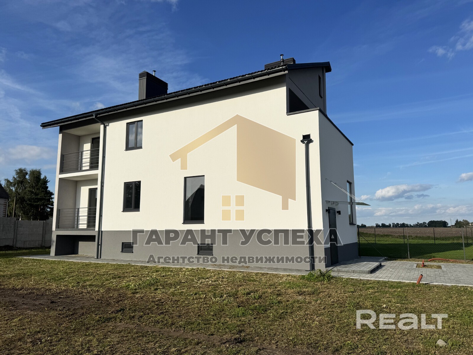Лот 9053. Продажа квартиры 196 кв. м в даблхаусе у Бреста Смотрите фото, читайте описание, а если остались вопросы - набирайте! Покупатель не платит никаких комиссий агентству! Поможем с кредитами, материнским капиталом, продажей Вашей недвижимости для покупки этой. Не успели купить таунхаус в Скандинавском предместье? Прямо перед Вами забрали последний даблхаус от «Полесья» на V-ом форте? Но Вы только вспомните их цены! Наше решение Вашего жилищного вопроса Вам понравился, а еще больше - цена и качество. А бонусом, помимо двух жилых этажей, для Вас цокольный и мансардный этажи! В продаже квартира в даблхаусе под чистовую отделку. Локация - Тельмы-1, недалеко от М-1. До асфальта сотня метров! Дом состоит из 2-х квартир, в продаже одна из квартир. Здесь 2 жилых этажа, отапливаемые мансарда и цокольный этаж, где можно оборудовать как жилые, так и подсобные помещения. Входная дверь «Йорк» с терморазрывом. За ней начинаются Ваши будущие апартаменты. Войдя в дом с уровня земли, Вы поднимаетесь по внутренней лестнице в дом. А это значит, что Вам не грозит наледь и угроза упасть со ступенек в гололед. Отсюда же можно попасть в подсобные и подвальные помещения. В подвальном помещении 75 кв. м есть где разгуляться. Огромное помещение почти в 50 кв. м. Что тут разместить - решать Вам. Зал, кинотеатр, мастерская, бильярдная, всё, на что у Вас хватить фантазии. На первом этаже расположена просторная гостиная и кухня, ванная, туалет. Поднимаясь наверх по прекрасной монолитной лестнице, Вы попадаете на второй этаж. Три жилые комнаты, две из которых имеют балконы, самый просторный из которых 13,3 кв. м. Уже сварена металлическая лестница на мансардный этаж 65,62 кв. м. Кровля утеплена минеральной ватой. Тут прекрасно разместится еще одна жилая комната. И чтобы было комфортнее, сюда выведены коммуникации для оборудования санузла. Высота потолка 2,5 м. Все перекрытия из железобетонных плит, к тому же под стяжкой есть слой изолирующего материала, что также не маловажно. В доме использованы дорогие материалы и оборудование. В всем доме энергосберегающие окна от Саламандр. Котел с бойлером косвенного нагрева. В жилых комнатах, цоколе, мансарде радиаторы Prado. Теплые полы в санузлах и коридорах. - Подвал 75,09 кв. м состоит из мини-котельной, тамбура, большого хозяйственного помещения в 28 кв. м. Высота потолка 2,2 м. - 1-й этаж 74,01 кв. м состоит из тамбура, коридора, кухня 14,8 кв. м, которая соединена с просторной гостиной 38,66 кв. м, туалета, ванной. Высота потолка 2,8 м. - 2-ой этаж 59,11 кв. м состоит из коридора, совмещенного санузла, 3 жилые комнаты п ********* кв. м. Дополнительно 2 балкона из спален площадью 13,3 (+3,18) и 4,17 кв. м. Высота потолка 2,52 м. - Мансардное помещение в 65,62 кв. м с отоплением и утеплением. Итого, как Мы писали ранее, Вы платите только за два жилых этажа, а в подарок готовые подвальные и мансардные помещения! Итого 277 кв. м! Что может быть лучше? - газовое отопление, газопровод выведен на кухню. Помимо него, также заложен кабель под электроплиту. Котельная с котлом котел De Dietrich 24 кВт и бойлером косвенного нагрева на 140 литров нагреет Ваш дом и обеспечит горячей водой лучше некуда! Не часто встретишь такую обустроенную котельную! Радиаторы Prado с запасом мощности в жилых помещениях. Тепло и уют Вам обеспечен. - электричество - 220/380В заведено в дом и разведено по точкам потребления; - на участке пробита 