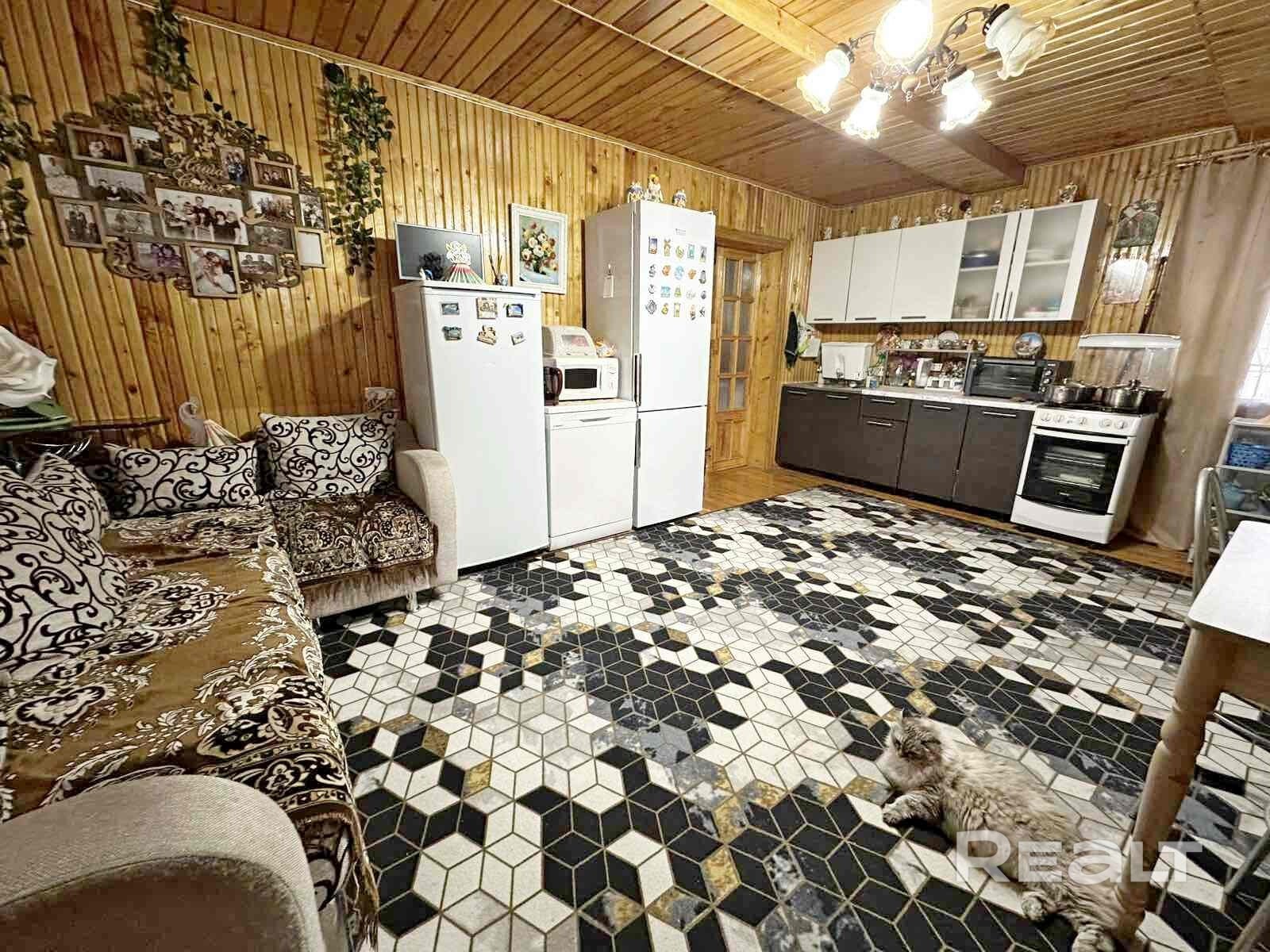Жилой дом в живописном месте, на берегу реки Вилия! Предлагаем к продаже одноэтажный бревенчатый облицованный кирпичом дом, общей площадью 94.3 м2. Дом расположен в деревне Данюшево, д. 13 Сморгонского района. Три изолированные комнаты, просторная кухня (22.3 м2), мансарда, веранда, терраса. Стены, потолки и полы обшиты вагонкой, окна деревянные. Коммуникации: водоснабжение - колодец, отопление - твердотопливный котел, канализация - местная. Указанный жилой дом расположен на земельном участке, площадью 13 соток. Участок ухоженный, огорожен. Высажено большое количество зеленых насаждений. Посажен молодой сад : яблоки, груши, смородина, крыжовник, земляника, клубника, жимолость, вишня, малина, голубика, барбарис, черешня, боярышник, нектарин, слива белая и красная, абрикосы, персики. Также на участке отличная баня, летний душ, просторная беседка, гараж и два блочных сарая. С участка имеется отлично оборудованный выход к Вилии. В деревню два раза в неделю приезжает автолавка. Хорошее и красивое расположение дома для комфортного проживания! Поможем продать Вашу недвижимость для покупки этой. Гарантия безопасности сделки и полное юридическое сопровождение. ООО «Дон Риэлт» УНП ********* Лицензия №02240/417